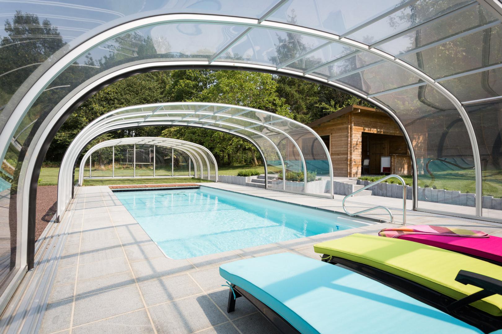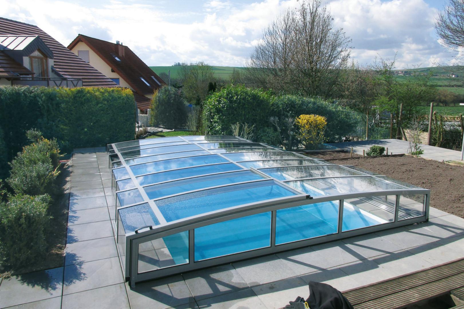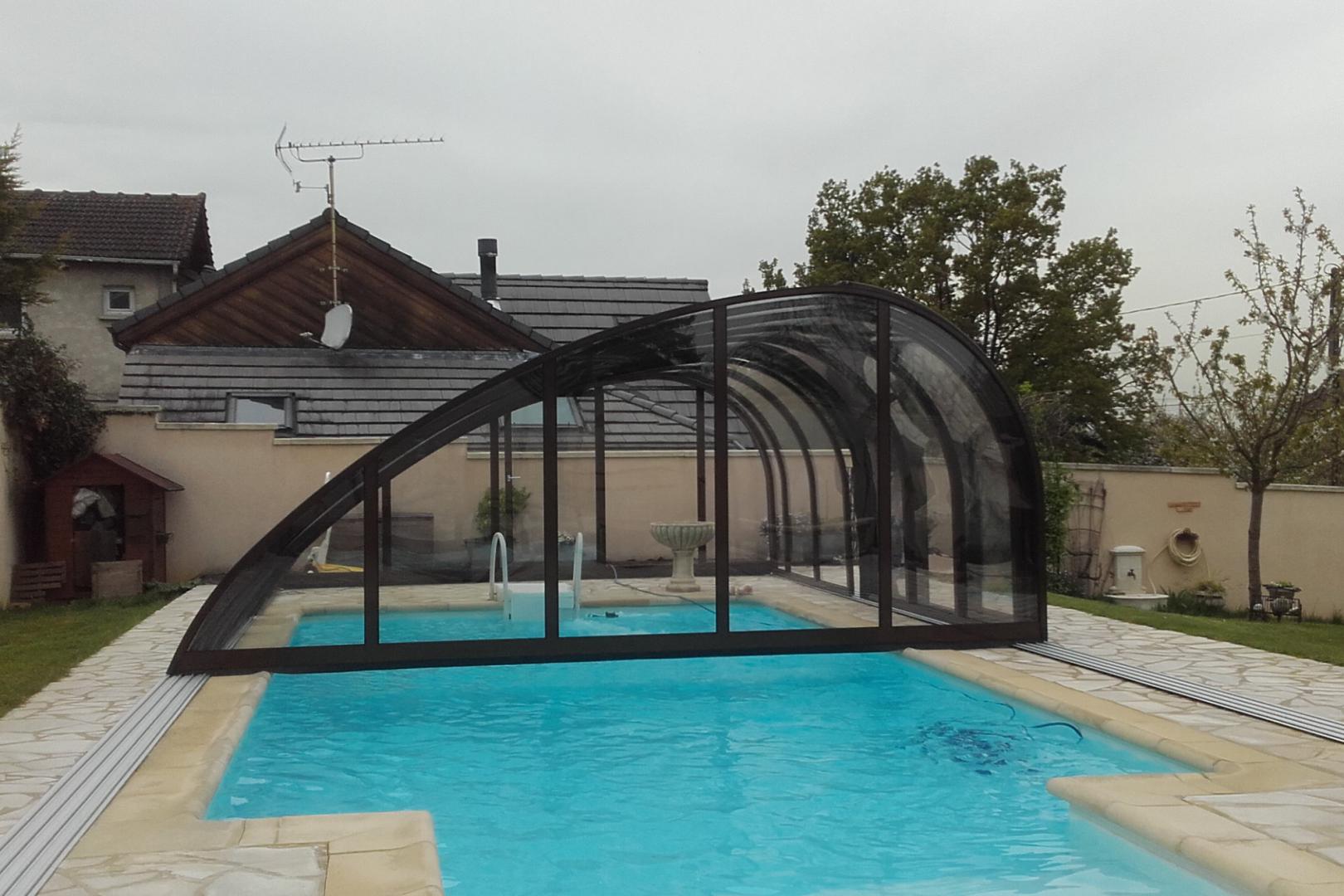 Une piscine couverte par un abri coulissant rétractable de mi-hauteur sans déclaration Juralu