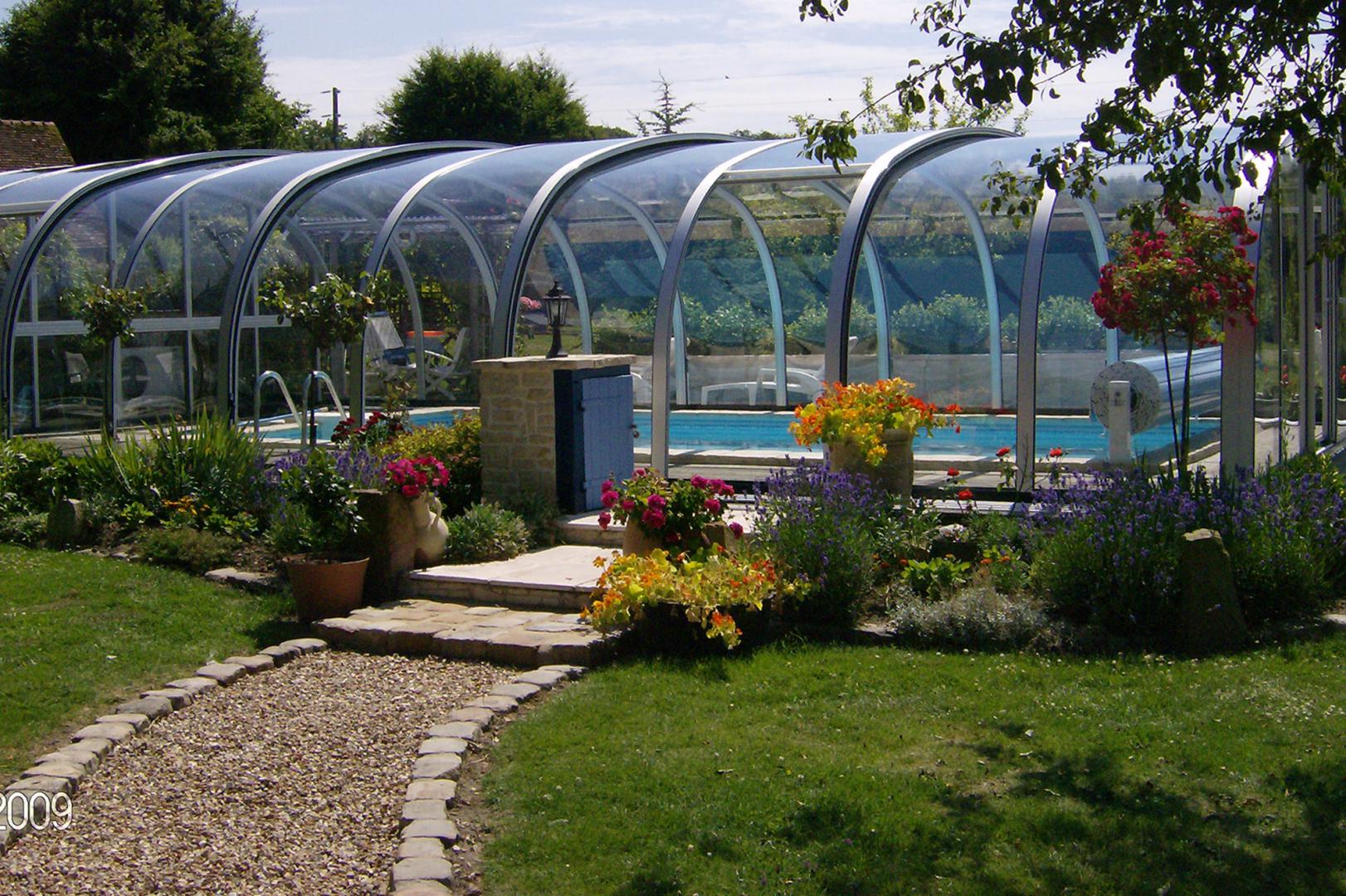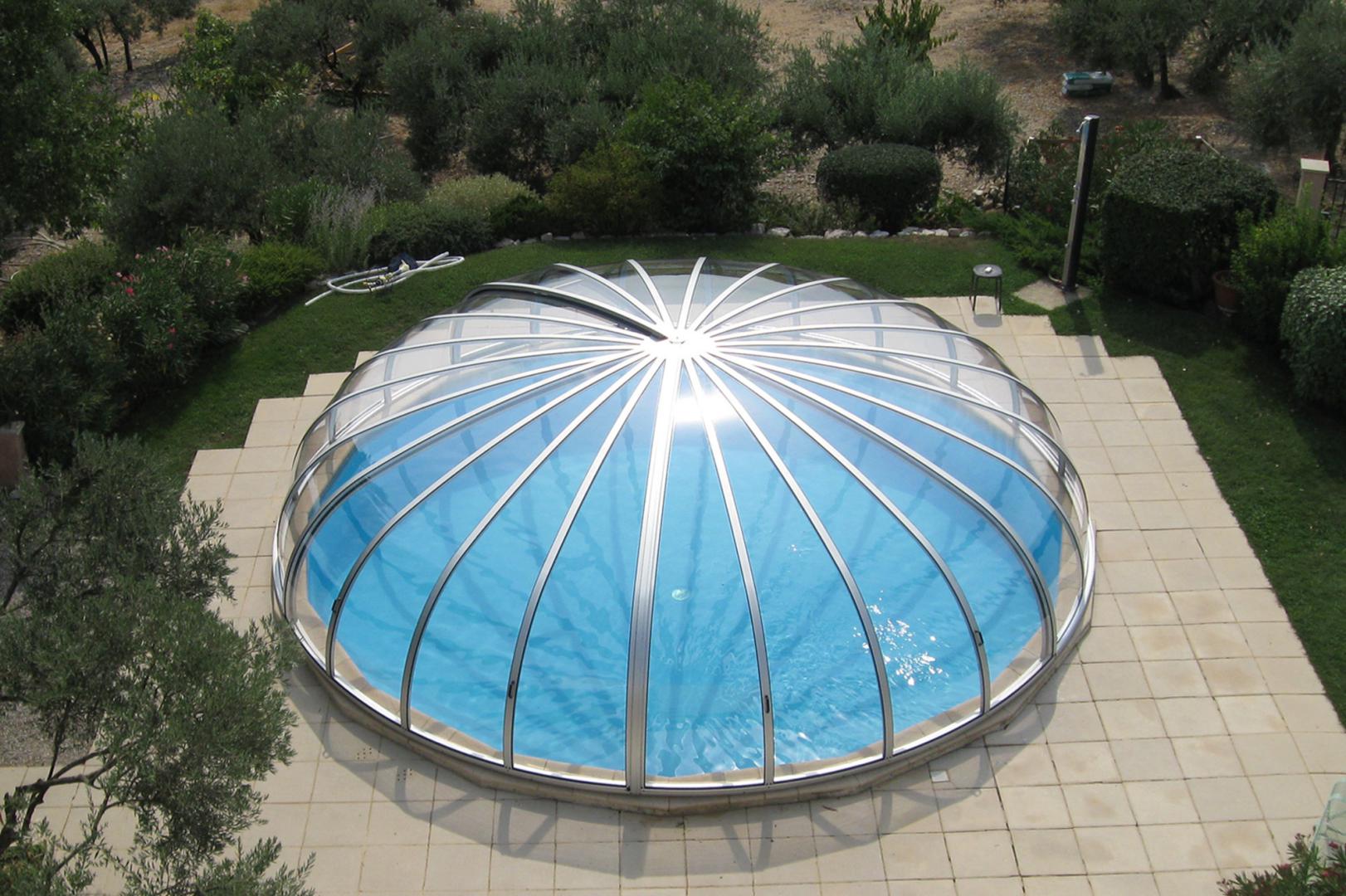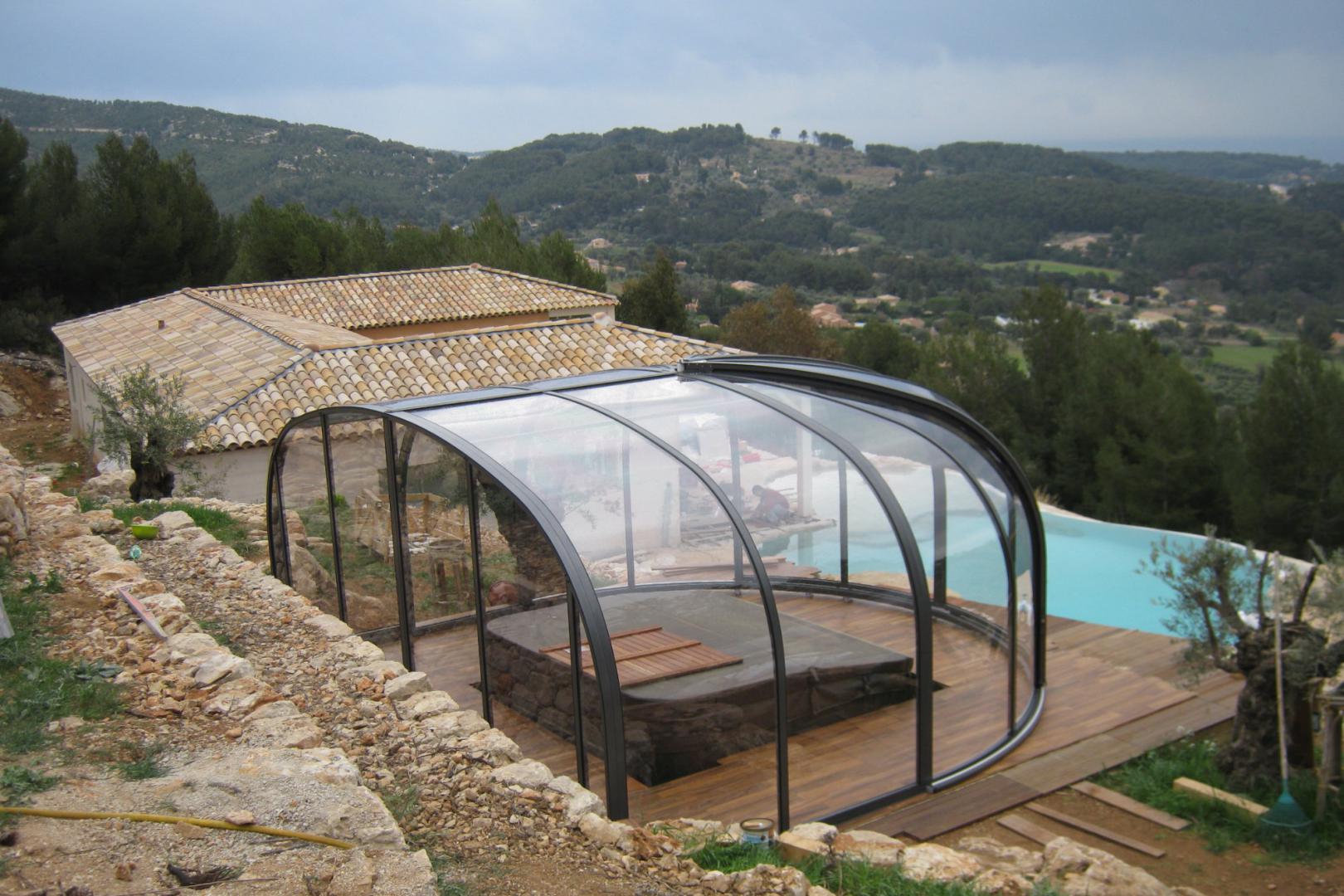 Une piscine couverte par un abri coulissant rétractable de mi-hauteur sans déclaration Juralu