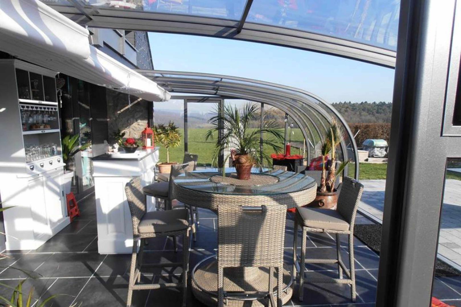 Une terrasse habillée par une abri véranda SAPHIR de VÖROKA.