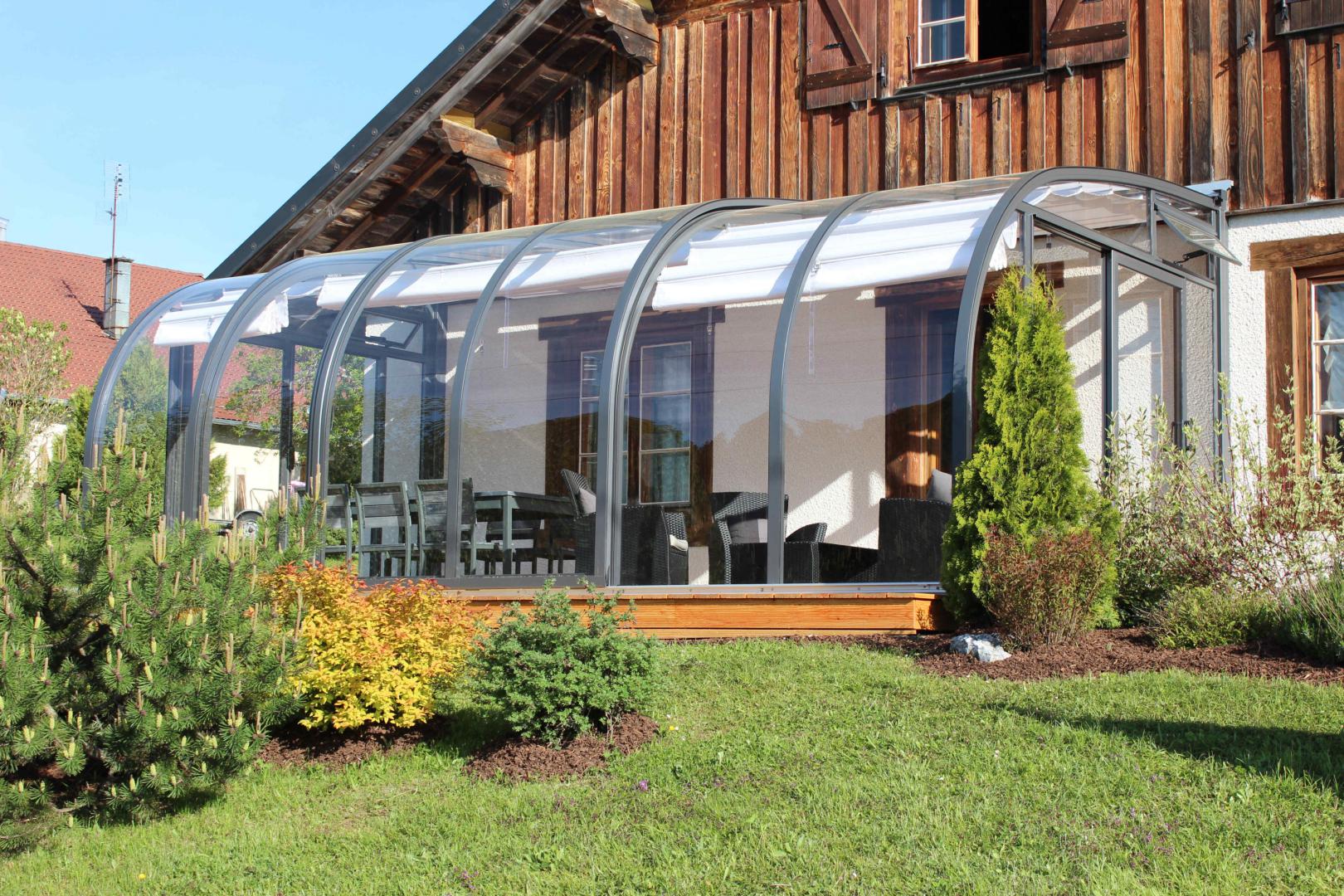 Pour assurer chaleur et confort en intersaison. Température idéale en mi-saison grâce à son principe de captage de l'énergie solaire. L'abri dispose en option de store motorisé pour exploiter au maximum le moindre rayon de soleil.