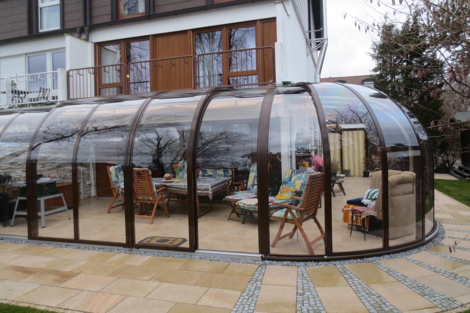 Pour assurer chaleur et confort en intersaison. Température idéale en mi-saison grâce à son principe de captage de l'énergie solaire. L'abri dispose en option de store motorisé pour exploiter au maximum le moindre rayon de soleil.