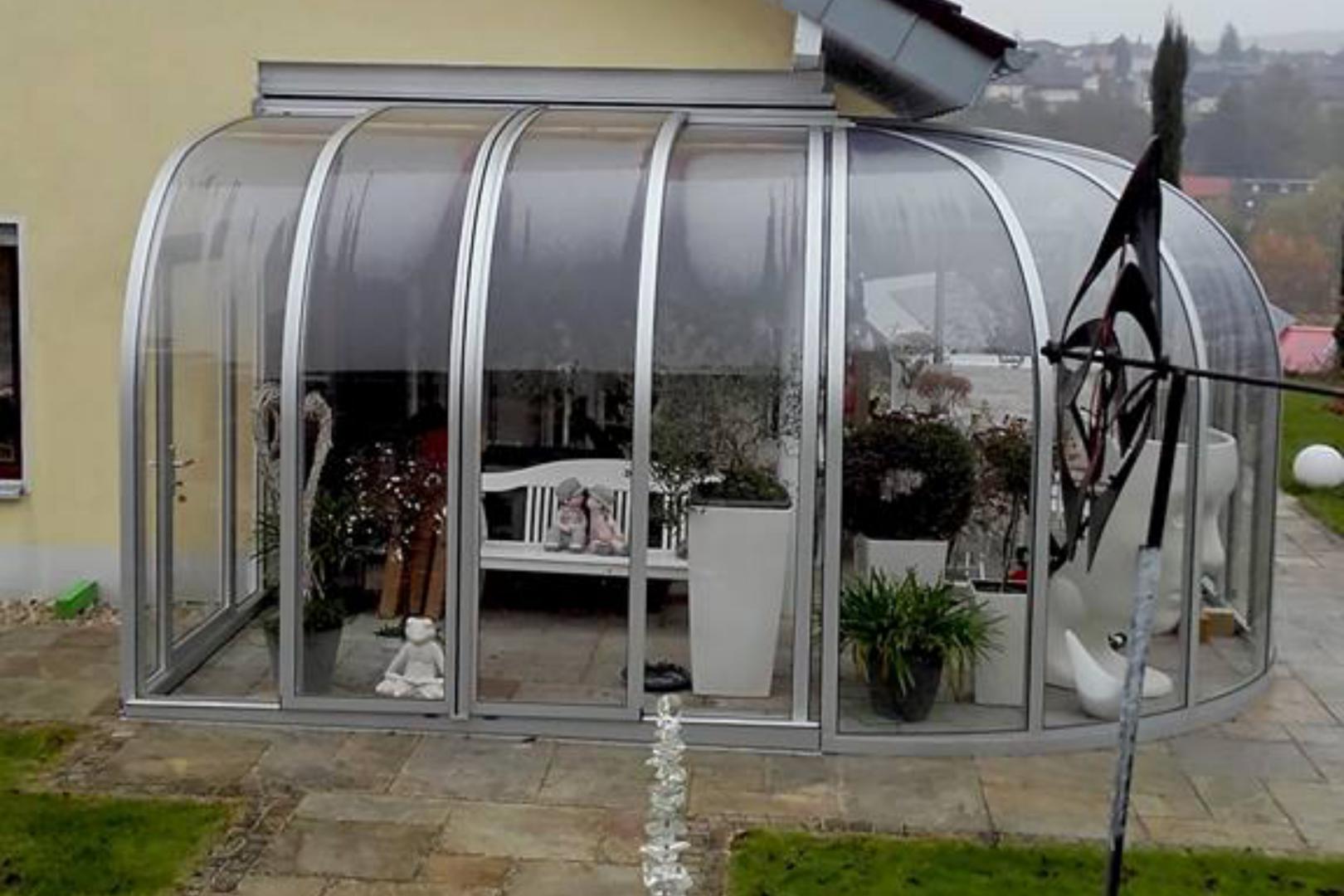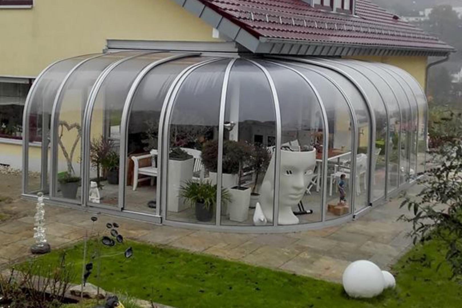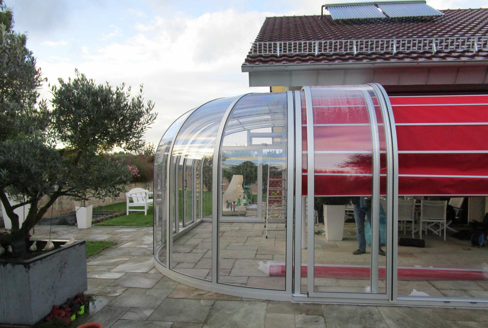 Abri de terrasse arrondi I Véranda rétractable I Modèle PERLE Vöroka-Juralu