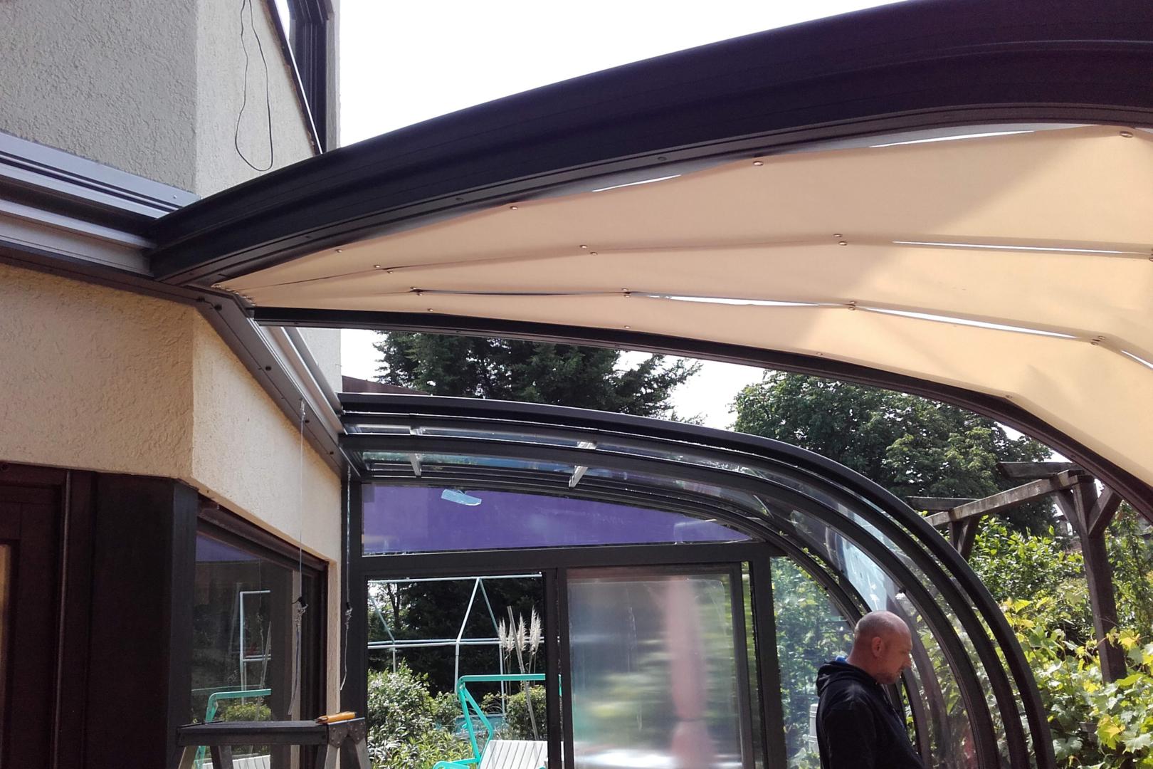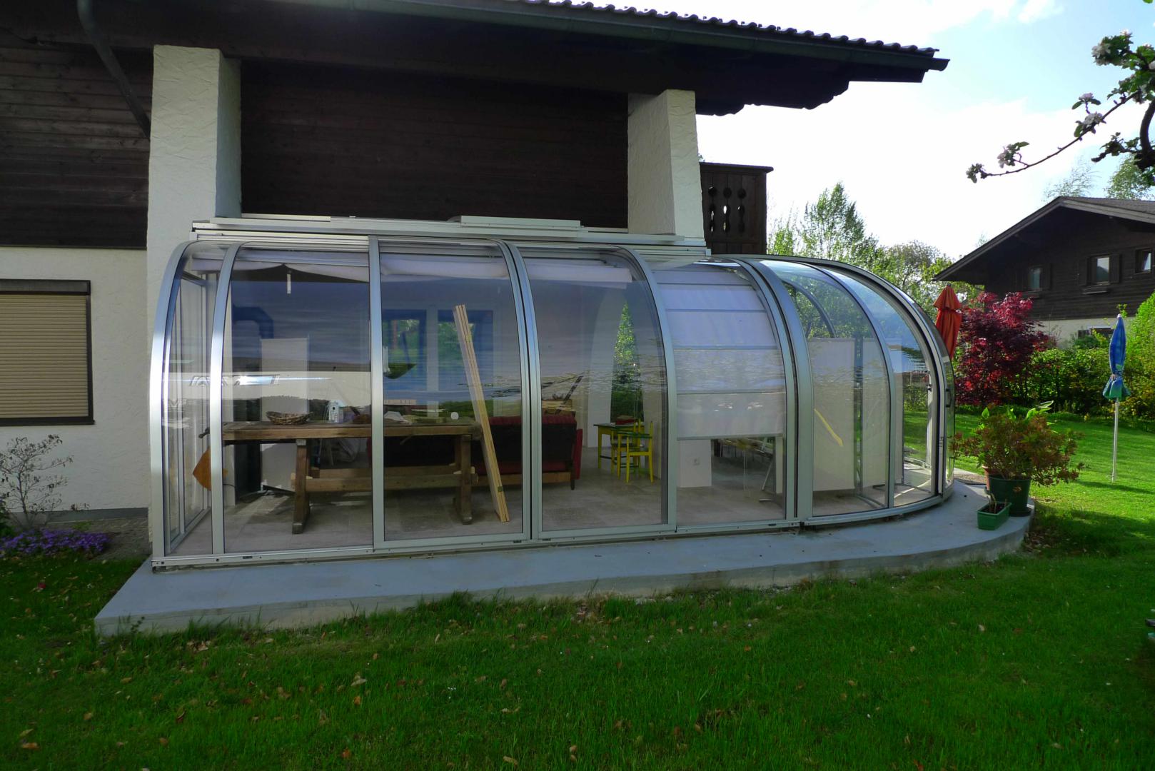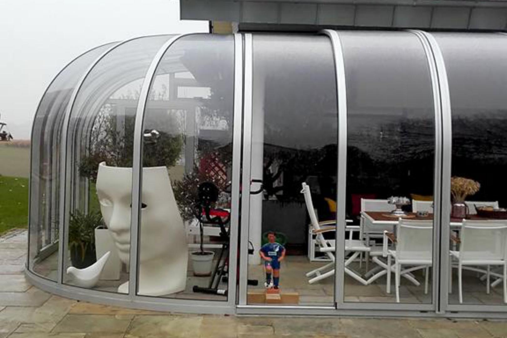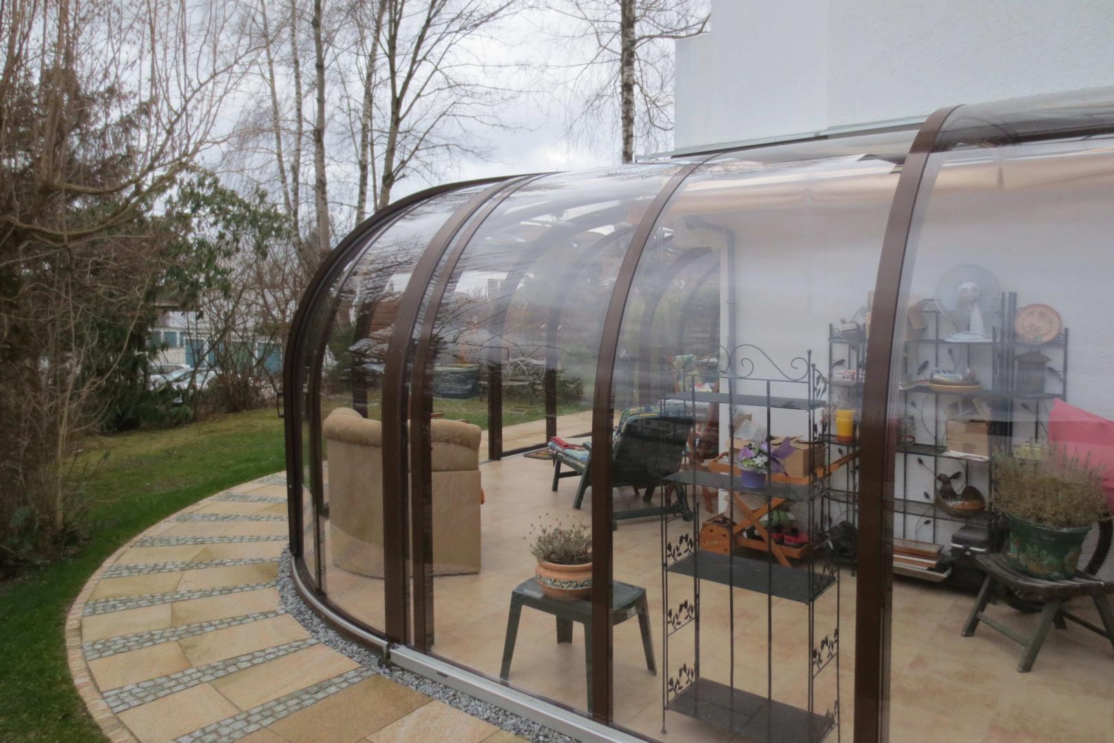 Abri de terrasse arrondi I Véranda rétractable I Modèle PERLE Vöroka-Juralu