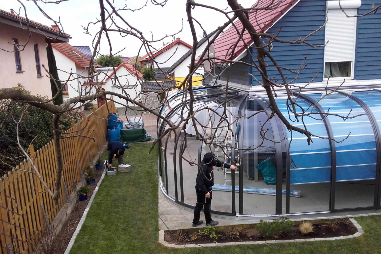 Tous les abris Juralu sont conçus, fabriqués et installés par l'entreprise allemande Vöroka GmbH qui est spécialisée dans le façonnage de l'aluminium et les structures coulissantes amovibles depuis plus de cinquante années.